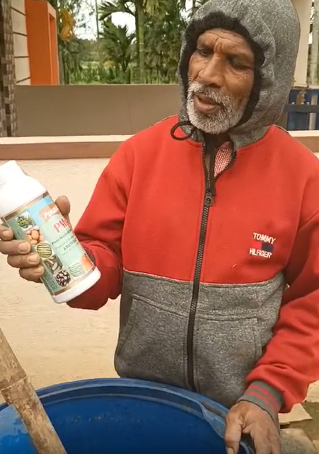 One of our farmers shared their experience with Arecanut trees using Powermix, Ponaplus, Pomus, and Grubex: 'Using Powermix, Ponaplus, Pomus, and Grubex has brought remarkable improvements to our arecanut trees.